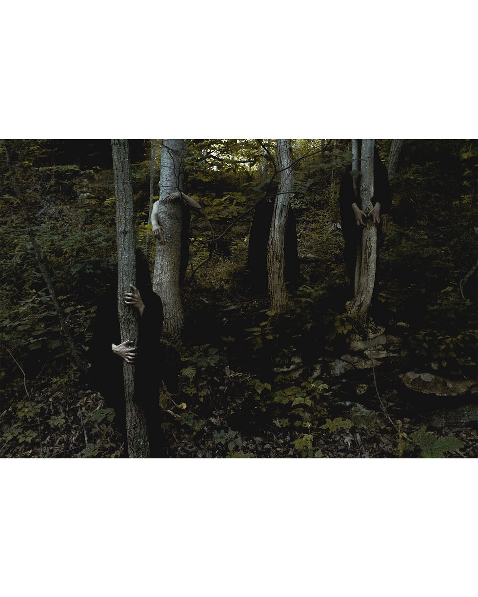 Created in collaboration between both artists CJ Recchia and Natalie Carroll, Fallen Embrace is a series that symbolizes a dark portrayal of loneliness, suffering, and abandonment, brought on by their haunting pasts. These images were composed in the unknown reaches of Western Pennsylvania's dense forests and landscapes. Everything from the handwritten logo, to the wardrobes, and illustrations are original pieces created together by both artists to form the final project. A number of antique frames were collected and refurbished in preparation for housing the images. The idea of having these photos live inside antiques was to create some what of a time portal, adding to the uncertainty of the setting and the time period in which the series provokes. To find more from Natalie Carroll, you can visit her Instagram @snap_shot_nat